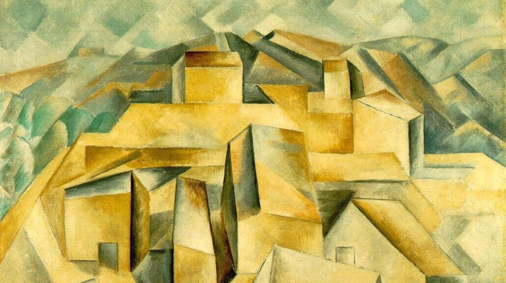 An diesem Beispiel ist zu sehen, wie Kubismus in einem Gemälde dargestellt wird. Man sieht die Facettierung der Formen, die insgesamt ein Dorf ergeben.